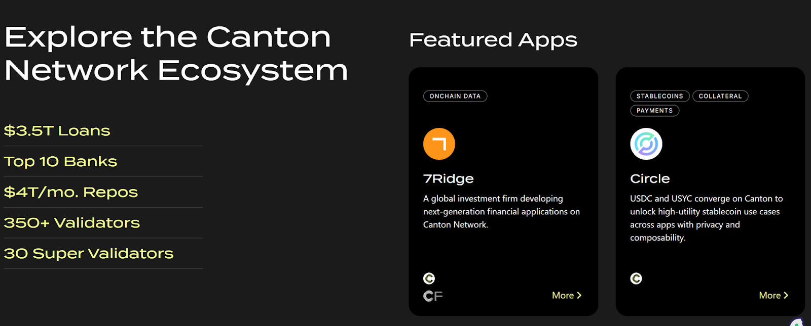 กลยุทธ์หลักในการขยาย Ecosystem คือการนำสินทรัพย์ระดับสถาบัน เช่น หุ้นสหรัฐฯ และพันธบัตรรัฐบาล (U.S. Treasuries) มาไว้บนบล็อกเชน ด้วยการนำ Real-world Assets เหล่านี้มาแปลงเป็น Token ซึ่งเป็นแผนการที่ Canton สร้างจุดตั้งต้นจำนวนมหาศาลให้กับ Developer เพื่อสร้าง Application ใหม่ๆ เช่น DEX หรือระบบจัดการโครงสร้างผู้ถือหุ้น (Cap table management) บน Canton Network