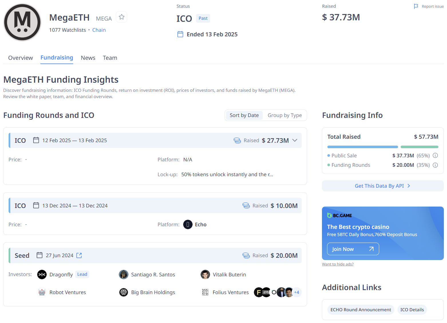 MegaETH ระดมทุนได้รวม 57.73 ล้านดอลลาร์สหรัฐฯ โดยแบ่งได้ดังนี้
